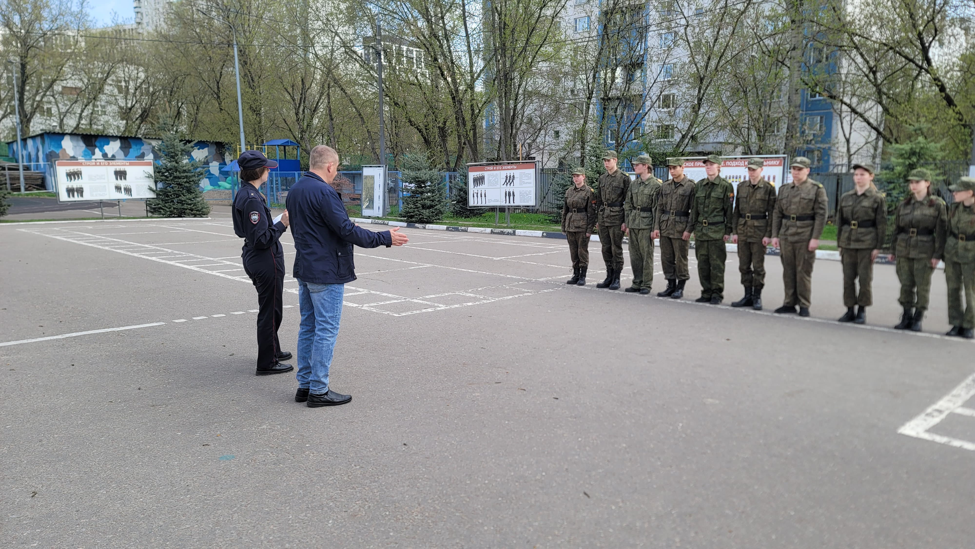 Самым ответственным этапом стал строевой смотр с выполнением элементов одиночной строевой подготовки, а также прохождением торжественным маршем и исполнении песни.