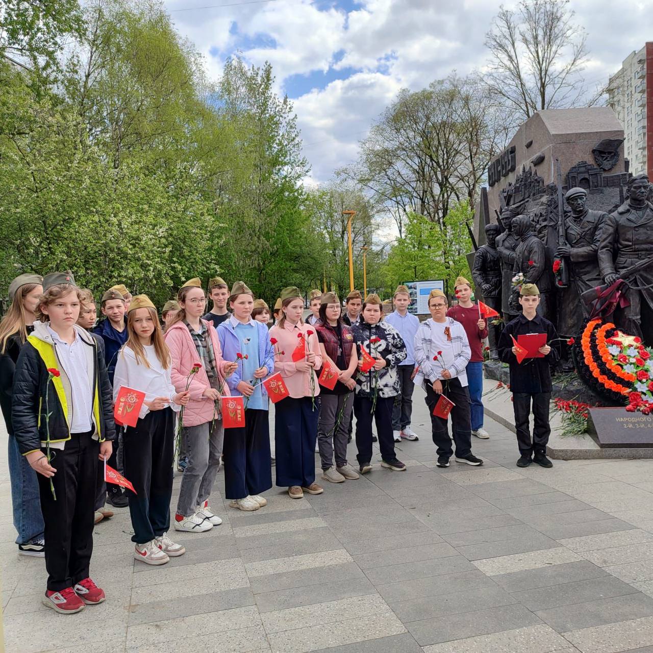 Ученики нашей школы почтили память тысячи москвичей, отдавших жизнь за Родину, возложив красные гвоздики как знак благодарности, гордости и памяти защитникам столицы.