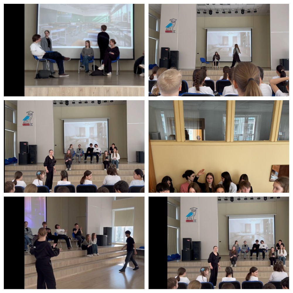 Ученики 9 «Ж» класса подготовили психологический театр, идея которого заключается в том, что зрители могут повлиять на сюжет и показать много интересных поворотов. Этот приём наделяет ребят новым социальным опытом и показывает многогранность мира человеческих отношений.