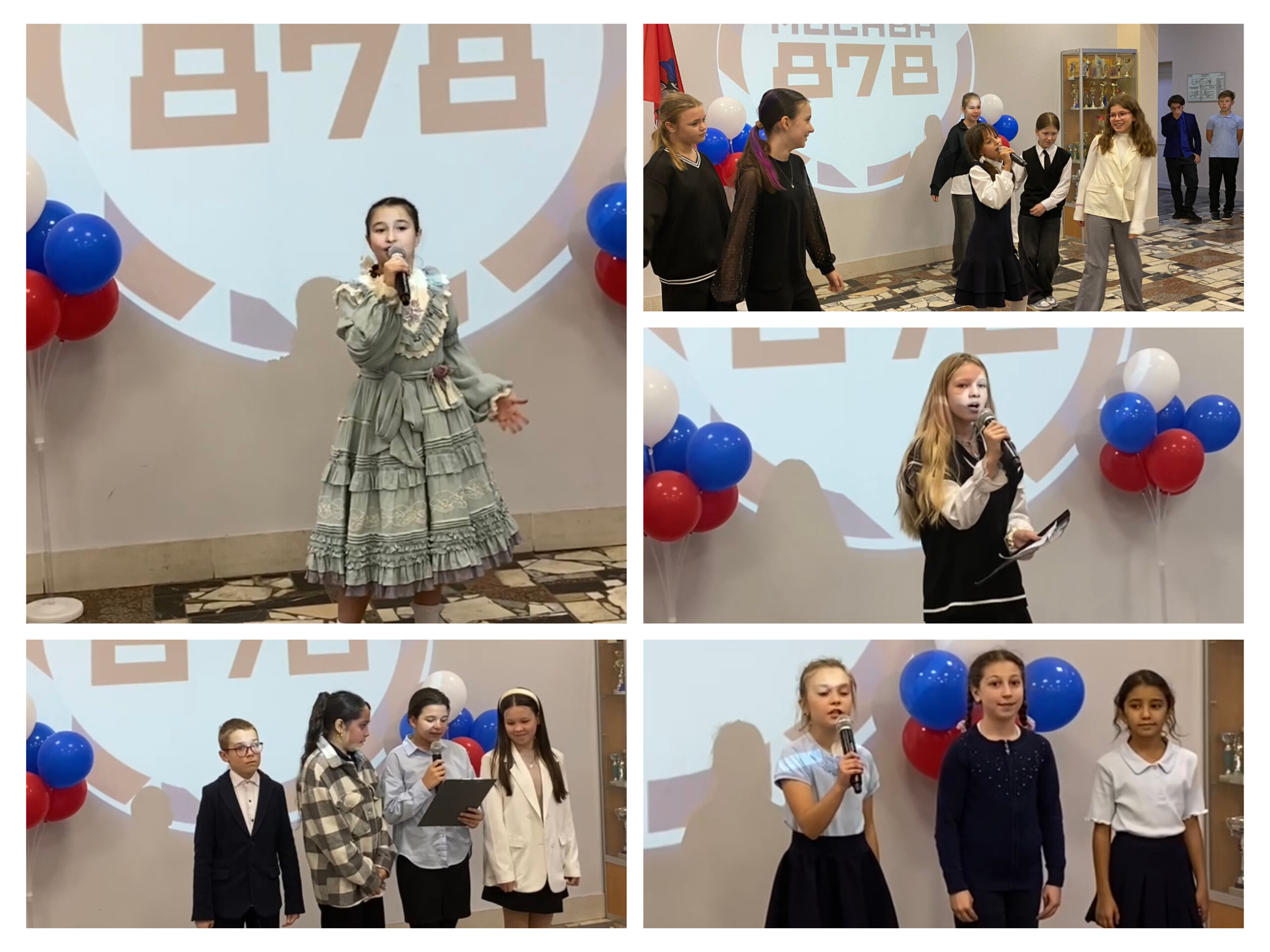 Варвара С., Николь Г. и Ксения И. прекрасно исполнили любимые песни о столице, а учащиеся 5 «Н» и 3 «Л» классов прочитали проникновенные стихи, посвященные красоте и величию нашего города. Выступления были встречены бурными аплодисментами. Ребята смогли передать любовь к Москве через музыку и слово, зарядив энергией праздника всех присутствующих.