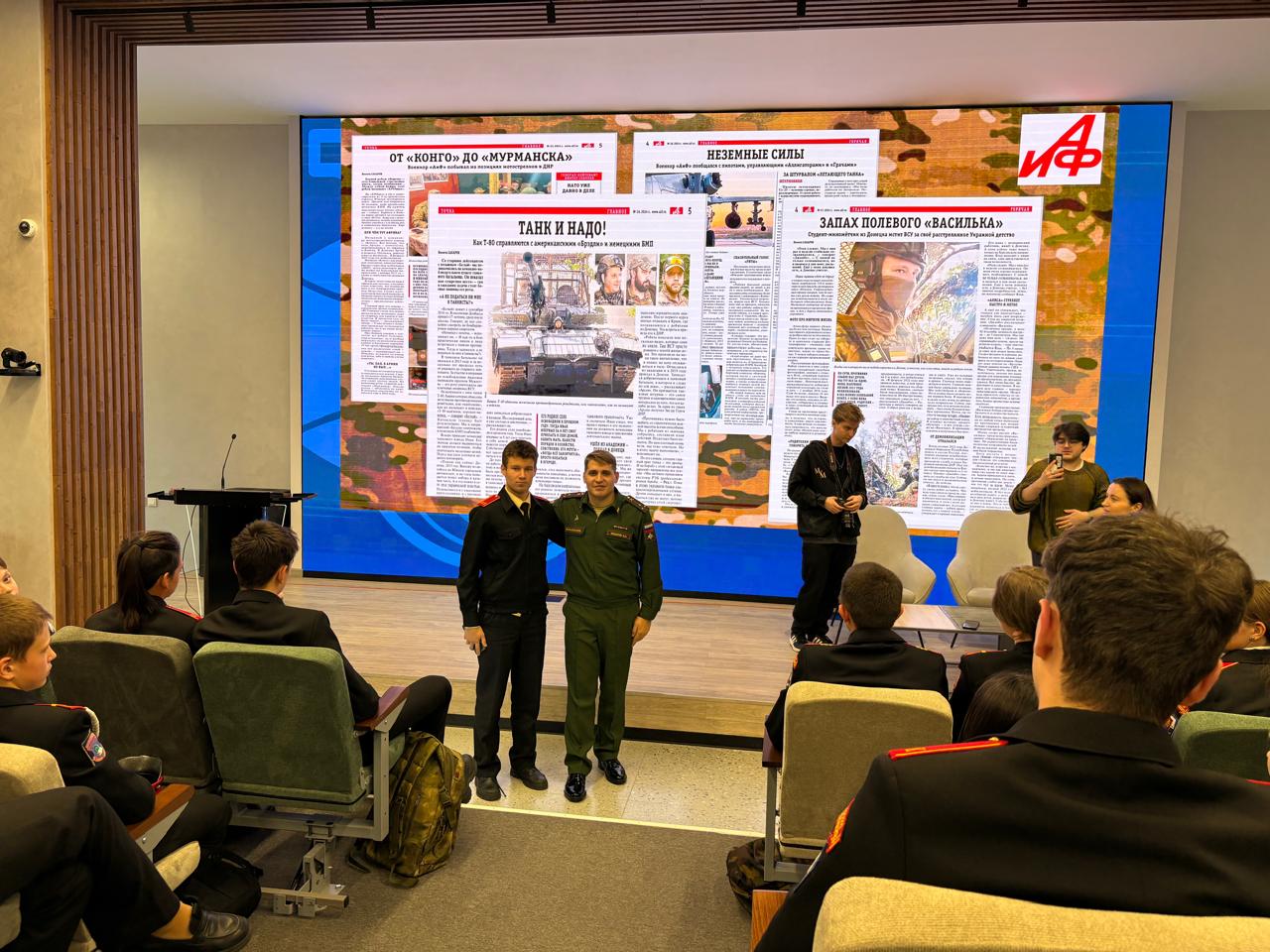 Для ребят в этом году выбрано очень интересное направление профессиональной подготовки — военная журналистика. В рамках занятий с кадетами проводится цикл дополнительных профессиональных проб, занятия по аналитике и фактчекингу, встречи с преподавателями кафедры журналистики РУДН, журналистами газеты «Красная звезда» и военного телевидения.