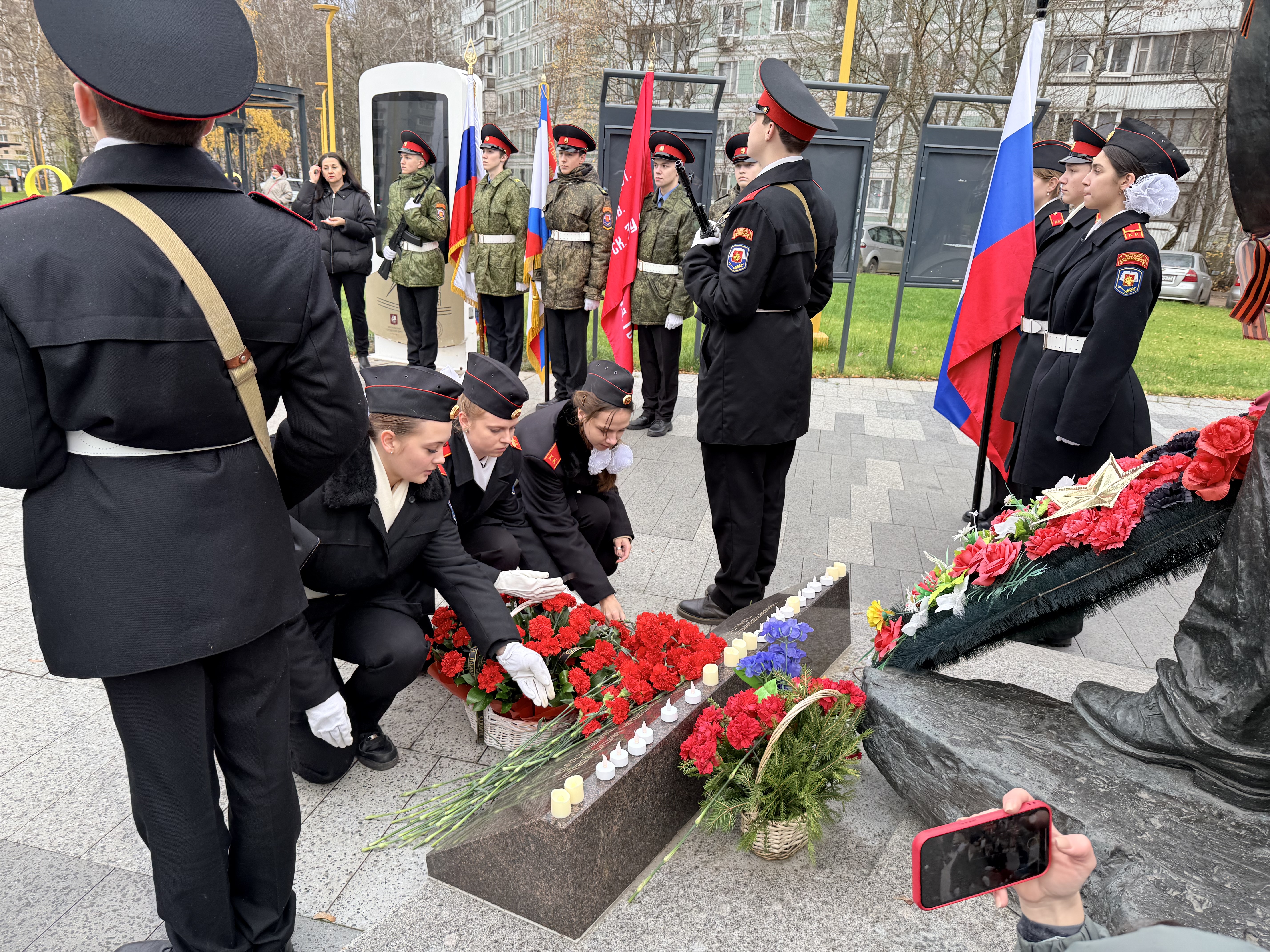 После прохождения Торжественным Маршем, кадеты почтили память героев Великой Отечественной войны и возложили цветы у памятника дивизиям народного ополчения 1941-1945 годов.